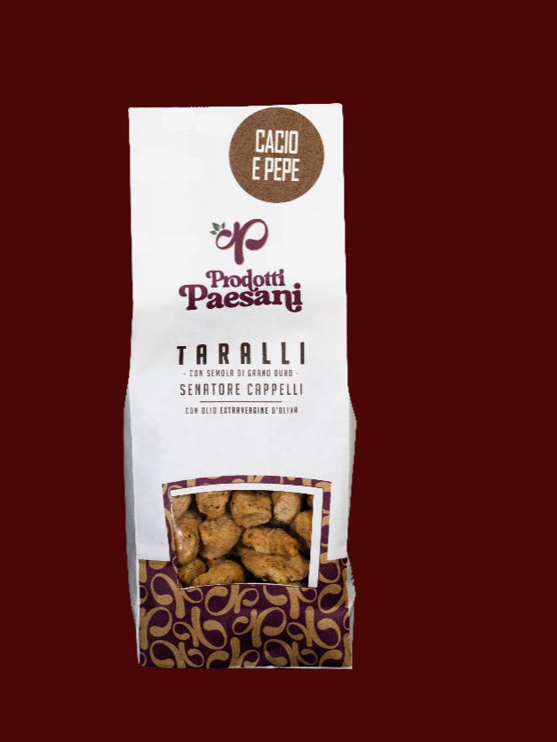 Questi taralli uniscono la croccantezza tipica dei taralli con il sapore deciso del cacio e il profumo intenso del pepe nero.